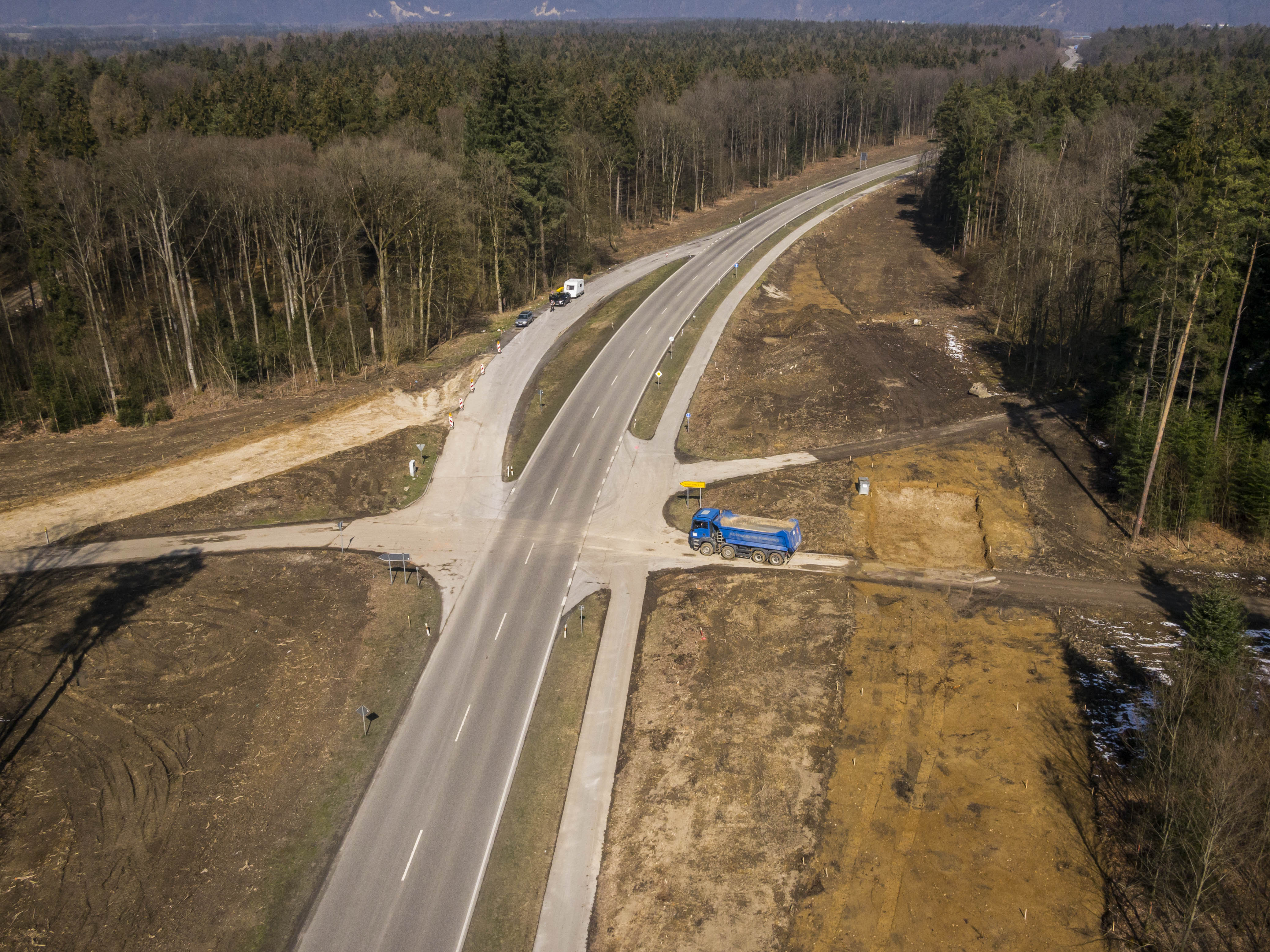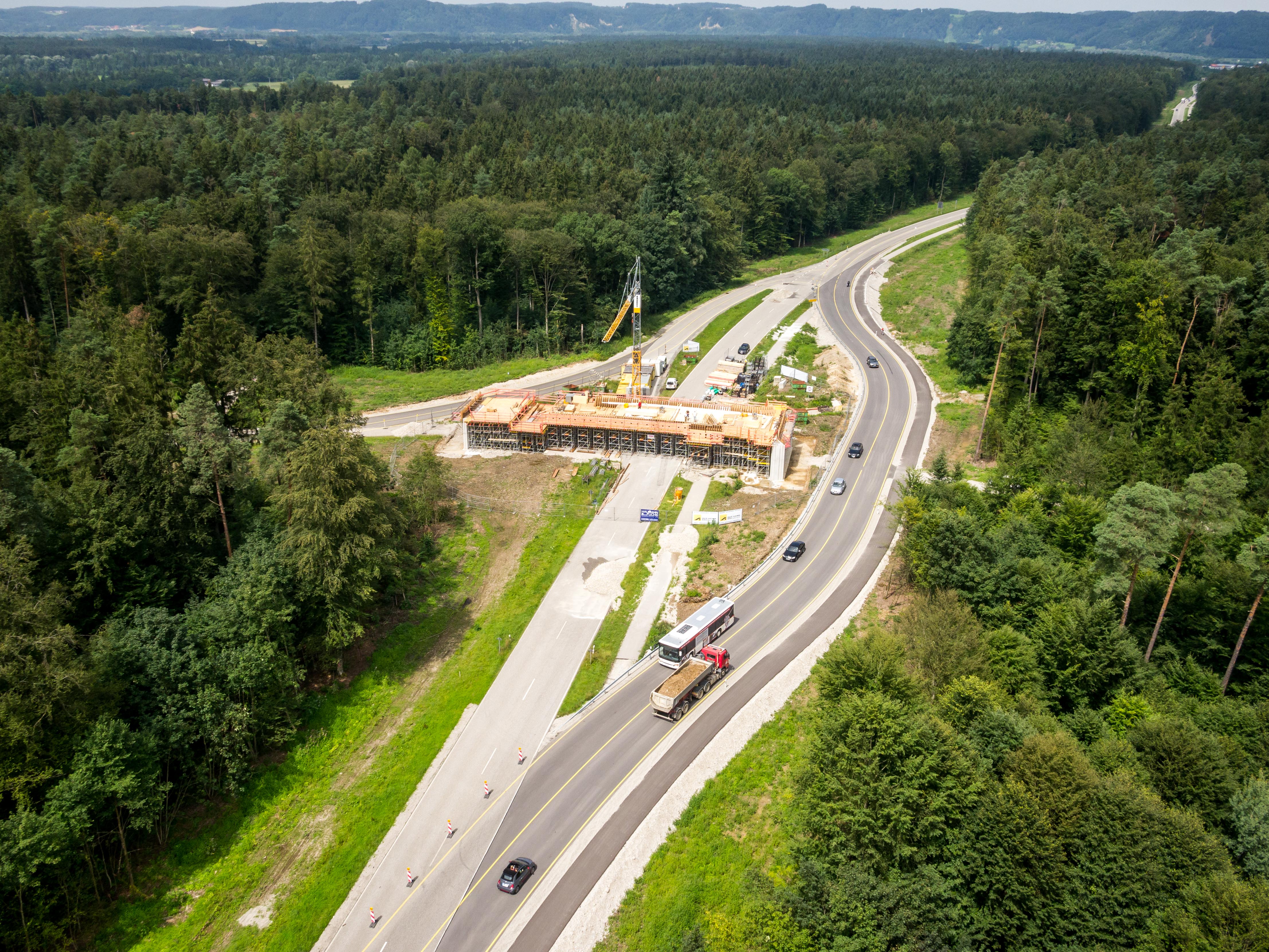 Um auf dieser viel befahrenen Strecke die Verkehrssicherheit zu verbessern, wird dieser 4,5 km lange Streckenabschnitt immer abwechselnd in eine Fahrtrichtung auf zwei Spuren ausgebaut.