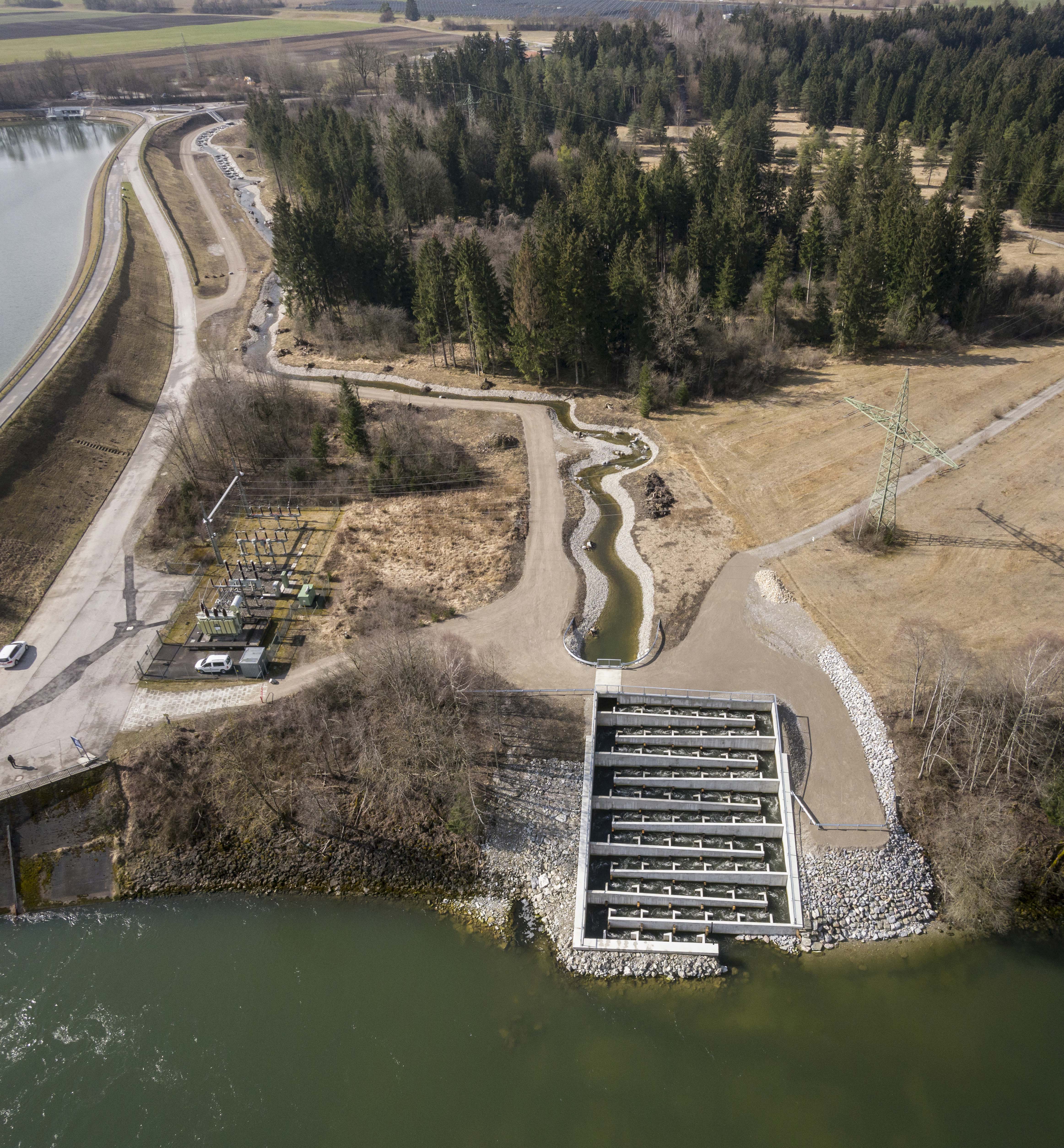 Fischaufstiegsanlage der Firma Uniper am Kraftwerk Kaufering